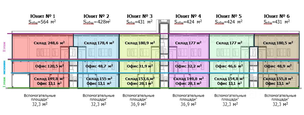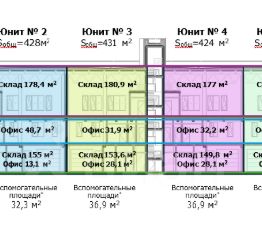 - Предлагаемые к покупке юниты от 424 м² до 562 м²;