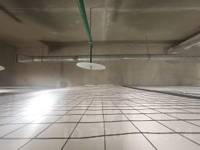 без коммуникация только вентиляция и труба пожаротушения как и у всех