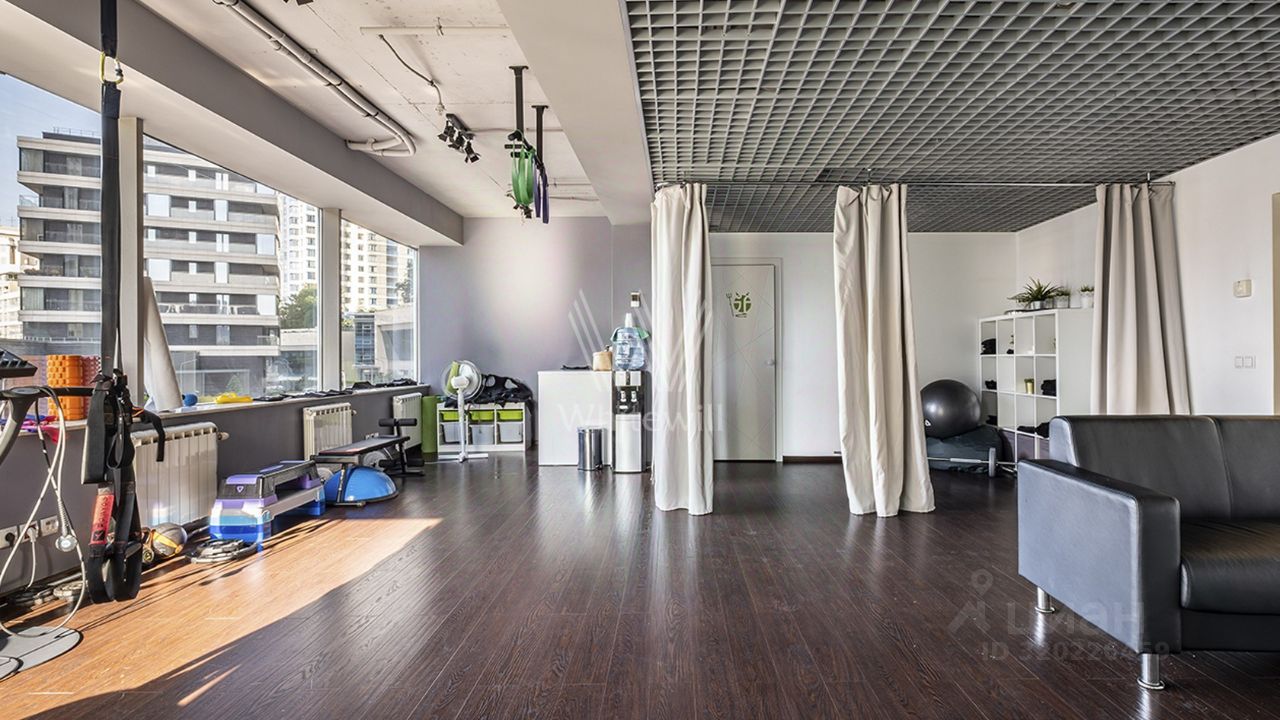 Помещение площадью 86 м² расположено на 3-м этаже в стилобате жилого дома в комплексе "Воробьевы Горы". Арендатор — студия фитнеса JustFit Exclusive Club, краткосрочный договор аренды, при необходимости может быть расторгнут в любой момент. Организованы отдельный вход с улицы, панорамное остекление с видом во двор. На территории комплекса предусмотрена парковка.