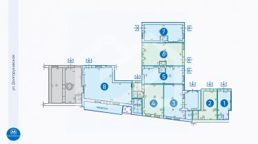 -активный пешеходный и автомобильный трафик перед фасадом здания по улице Долгоруковская;