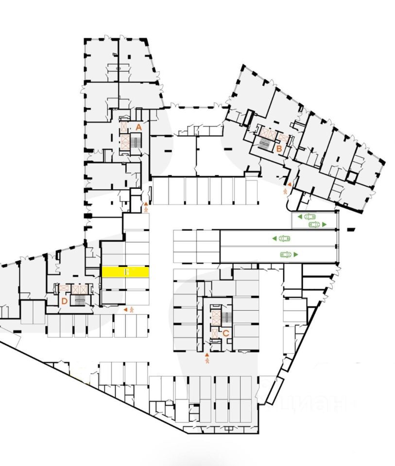 Продается просторное семейное машиноместо (28,2 м²: 14,0 + 14,2) на -1 этаже в ЖК Level Нагатинская (места 15-16, выделены желтым на схеме).