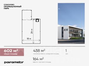 Помещение общей площадью от 602 м2 до 4 905 м2 состоит из универсального промышленно-складского блока и офисной части. Количество доков с докшелтером и выдвижным доклевеллером и количество ворот на нулевом уровне от земли зависит от площади помещения.