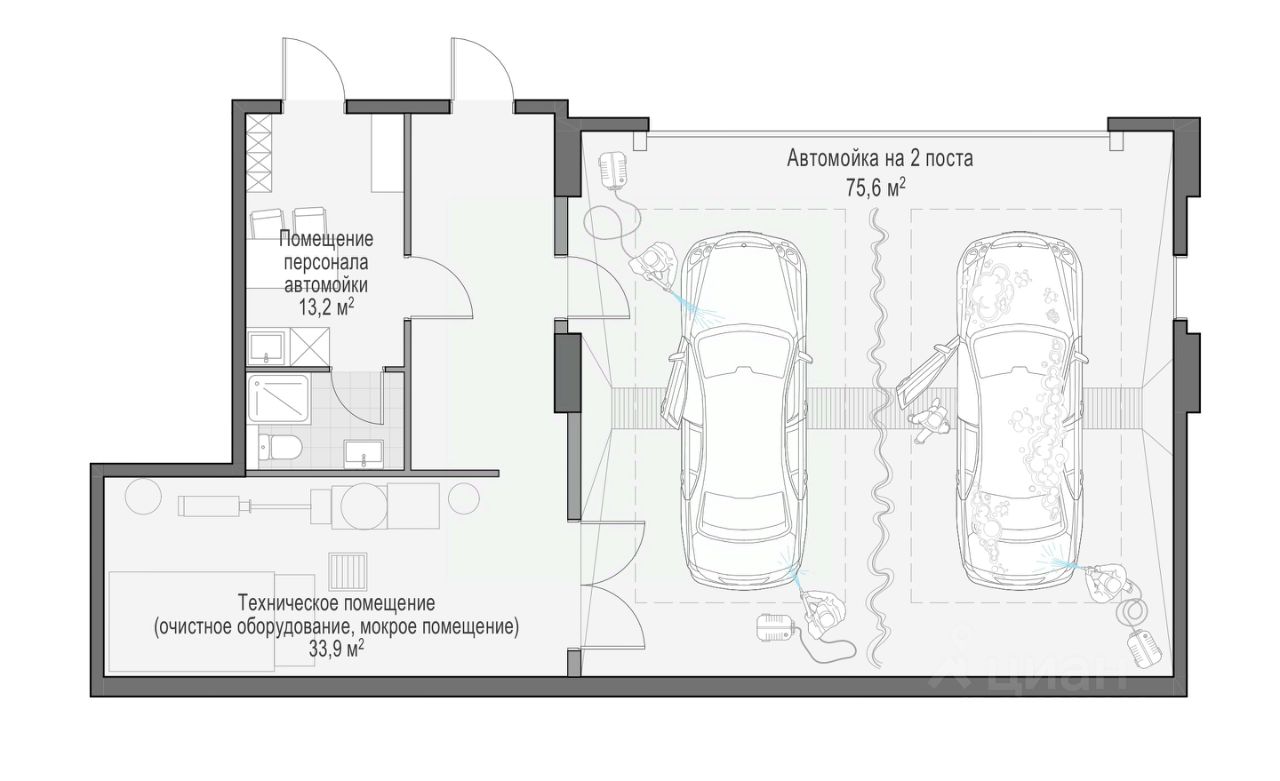 Лот, площадью 122,6 кв. м., расположен на -2 этаже подземного паркинга на 279 машино-мест готового премиального жилого квартала. Автомойка выполнена по всем технологическим стандартам, здесь комфортно разместятся 2 моечных поста, помещение персонала и технические помещения.