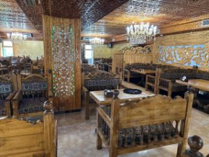 1. Аутентичный дизайн и атмосфера: Уникальное оформление площадью более 700 м². Деревянные резные массивы, выполненные вручную, придают заведению неповторимый стиль.