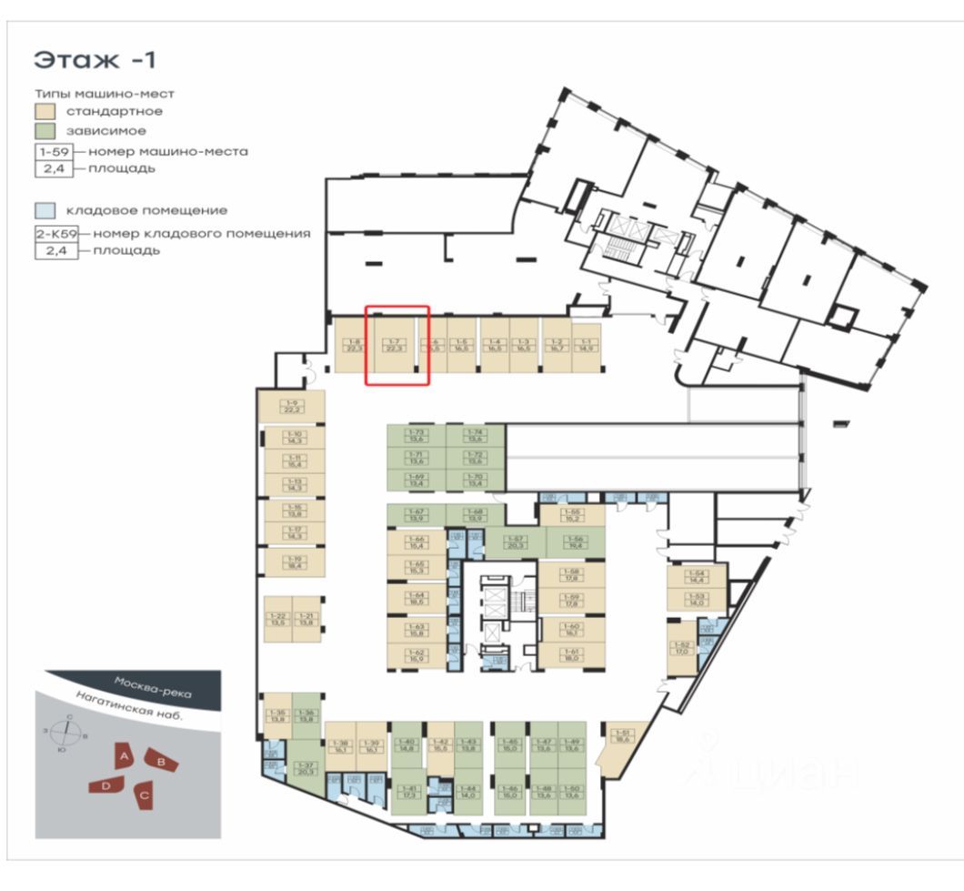 Потрясающее машиноместо с площадью 22,3 (!) метра, на -1 этаже в ЖК Левел Нагатинская (место номер 7, на схеме отмечено красным). Отличная возможность с комфортом разместить автомобиль, имея достаточно места вокруг для посадки-высадки! Также можно дополнительно разместить мотоцикл, лодку или прицеп!
