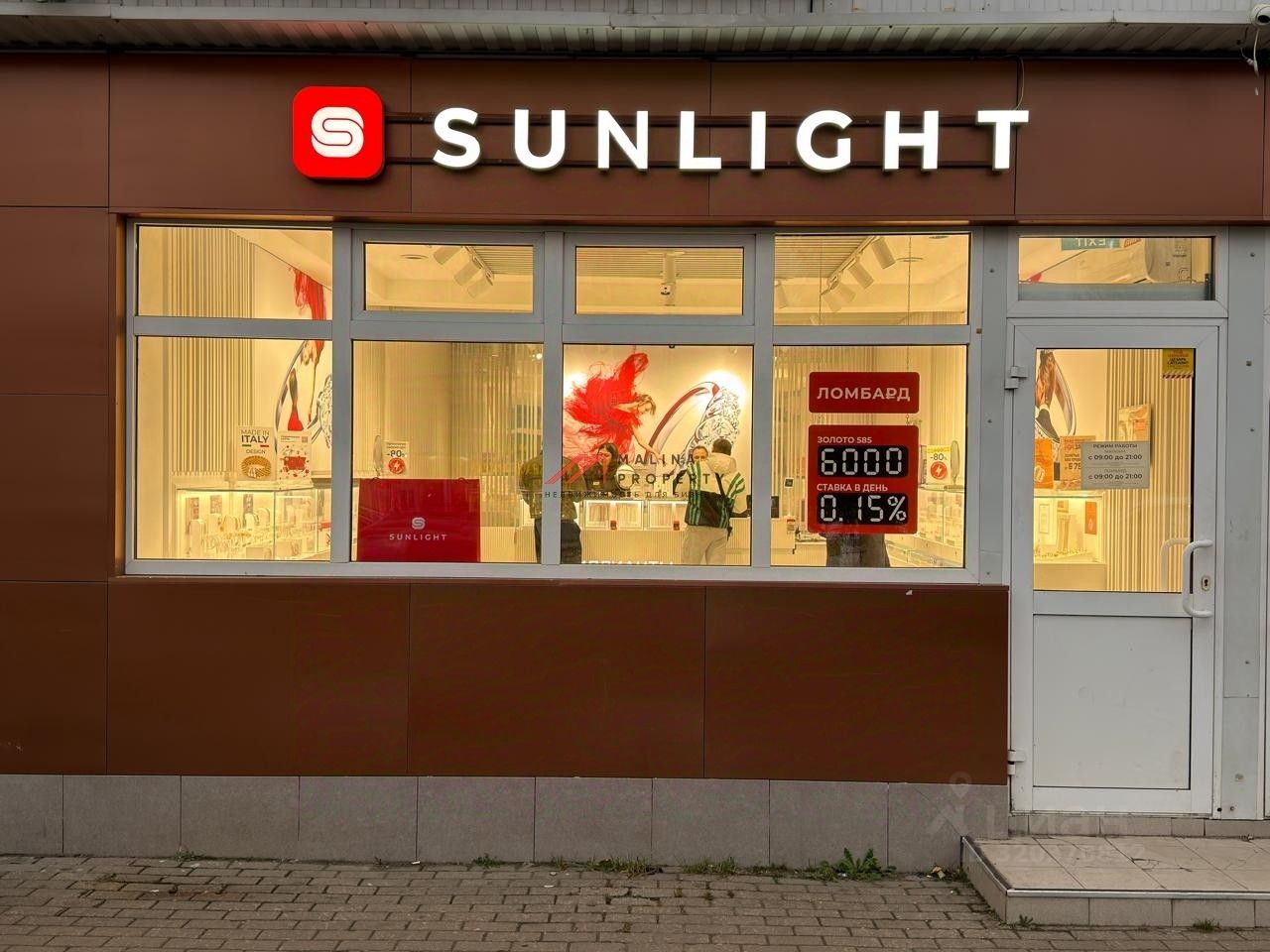 Арендатор: ювелирный салон "Sunlight", месячная арендная плата 182 306 рублей. Ежегодная индексация 5 %.
