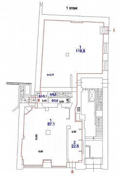 1-й этaж S=243,7 м2., h=3,77 м.,
