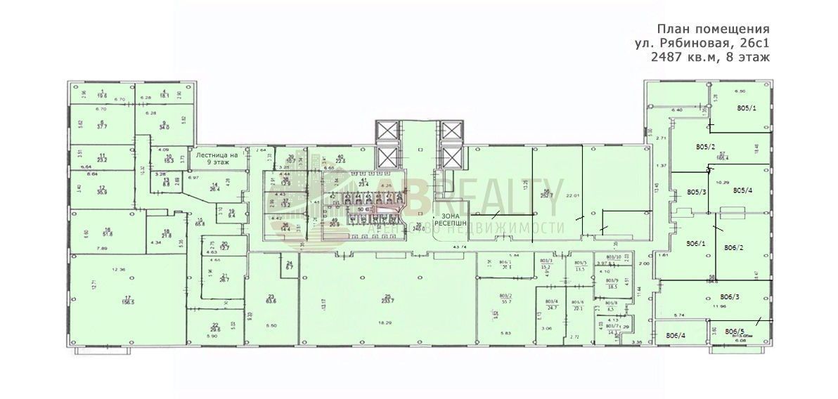 Офисы занимают 8-й этаж (2128 кв.м) и 9-й этаж (359 кв.м).