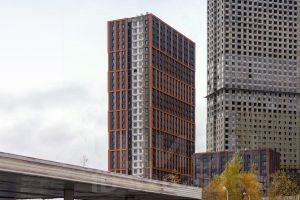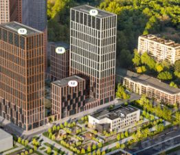 Линейка проектов (ПИК+) с новым уровнем комфорта. Здесь собрали все лучшие архитектурные и функциональные решения. Доминантой квартала является 50-этажная башня. Отделка фасада стеклом гармонично поддержана металлом медного оттенка.