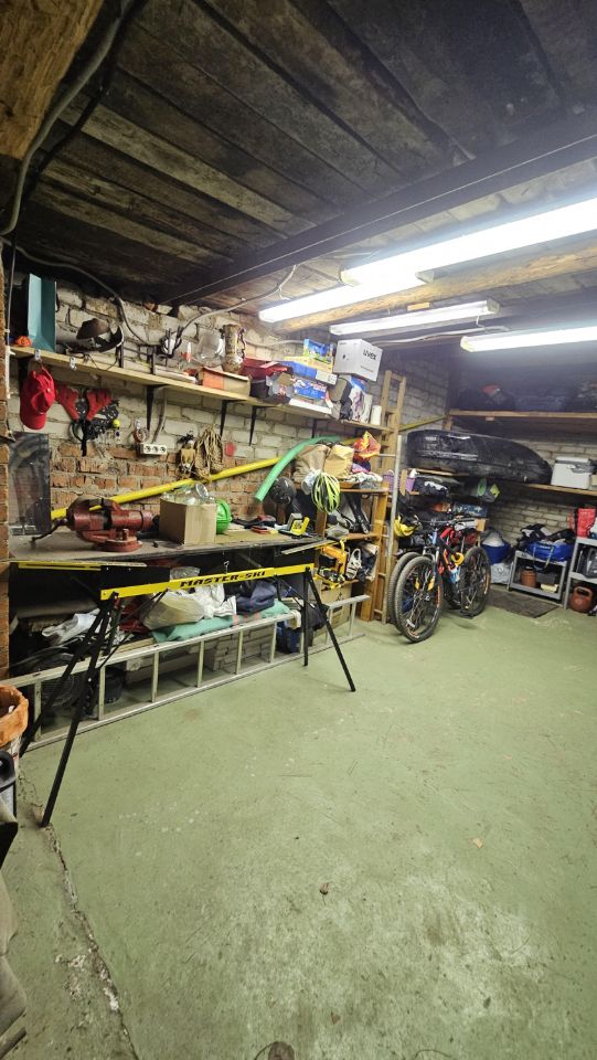 Просторный кирпичный гараж 22,4 кв.м. Есть небольшой погреб, хорошее освещение, много удобно расположенный розеток, есть наружная розетка. Имеются удобные полки для мелочевки и крупных/тяжёлых вещей. В собственности по договору купли-продажи с 2021 года.