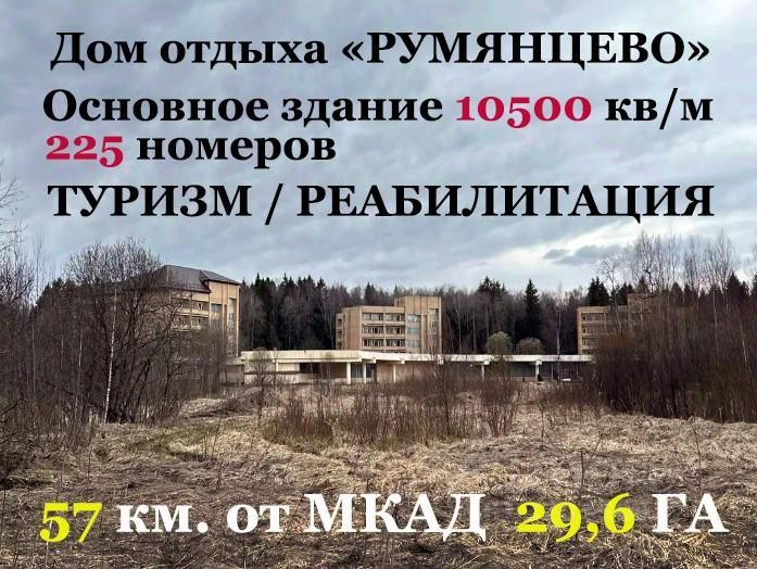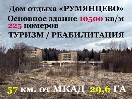 Продается готовый дом отдыха на 500 мест. Экологически чистый район, территория 29,6 Га с солнечными и лесными участками, собственные коммуникации. Удобный круглогодичный подъезд. Помимо основного корпуса, на территории имеются складские помещения, гаражи, электроподстанция, котельная, две скважины с резервуаром и станцией водоподготовки, очистные сооружения, ГРП, другие вспомогательные помещения. В частной собственности, варианты оформления обсуждаются. Цена определена независимым экспертом-оценщиком, рассмотрим встречные предложения.