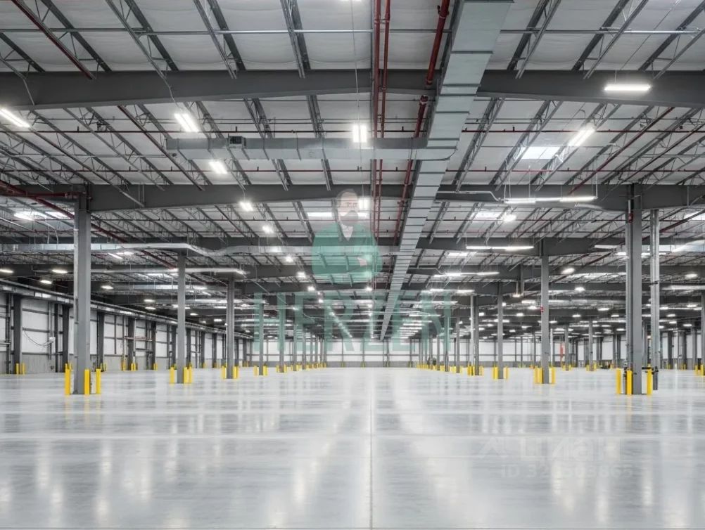 Ровный бетонный пол с антипылевым покрытием. Допустимая нагрузка на пол 6 т/м2.