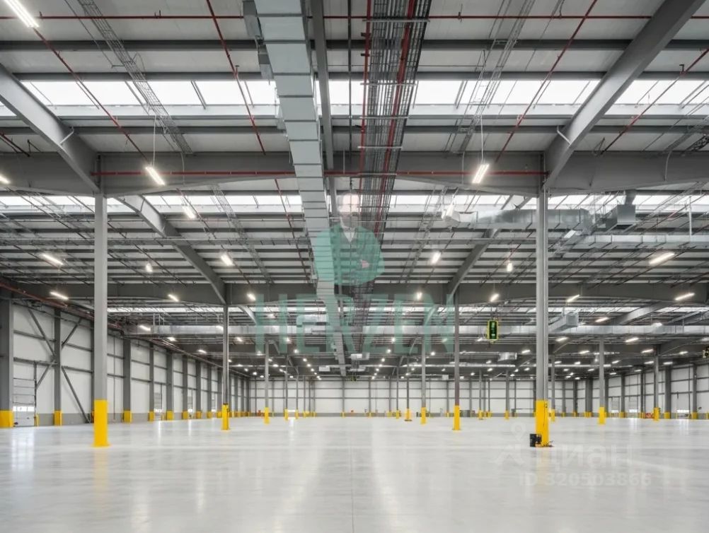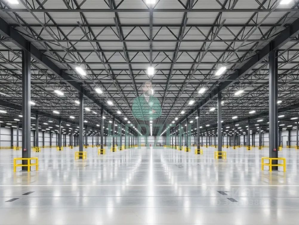 Ровный бетонный пол с антипылевым покрытием. Допустимая нагрузка на пол 6 т/м2.