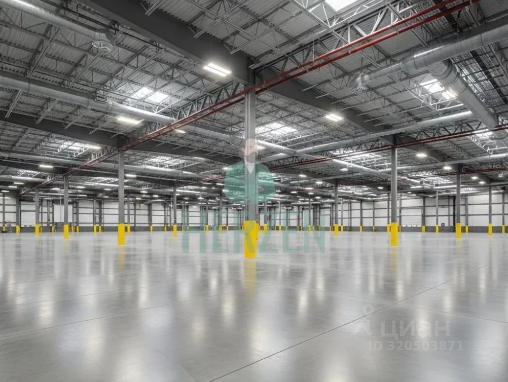 Ровный бетонный пол с антипылевым покрытием. Допустимая нагрузка на пол 6 т/м2.