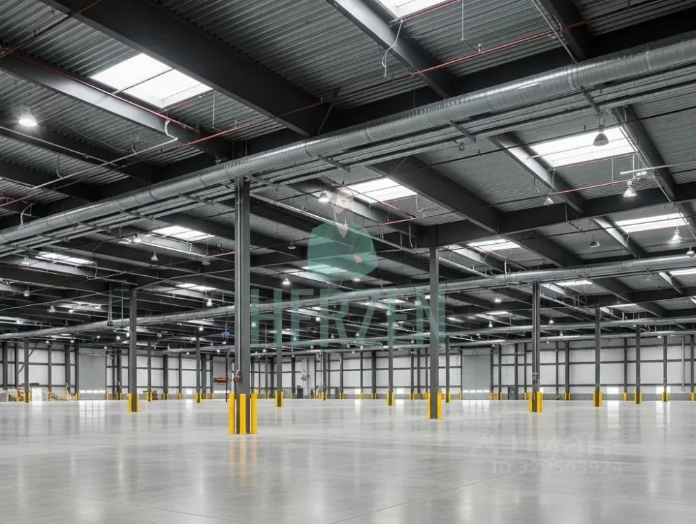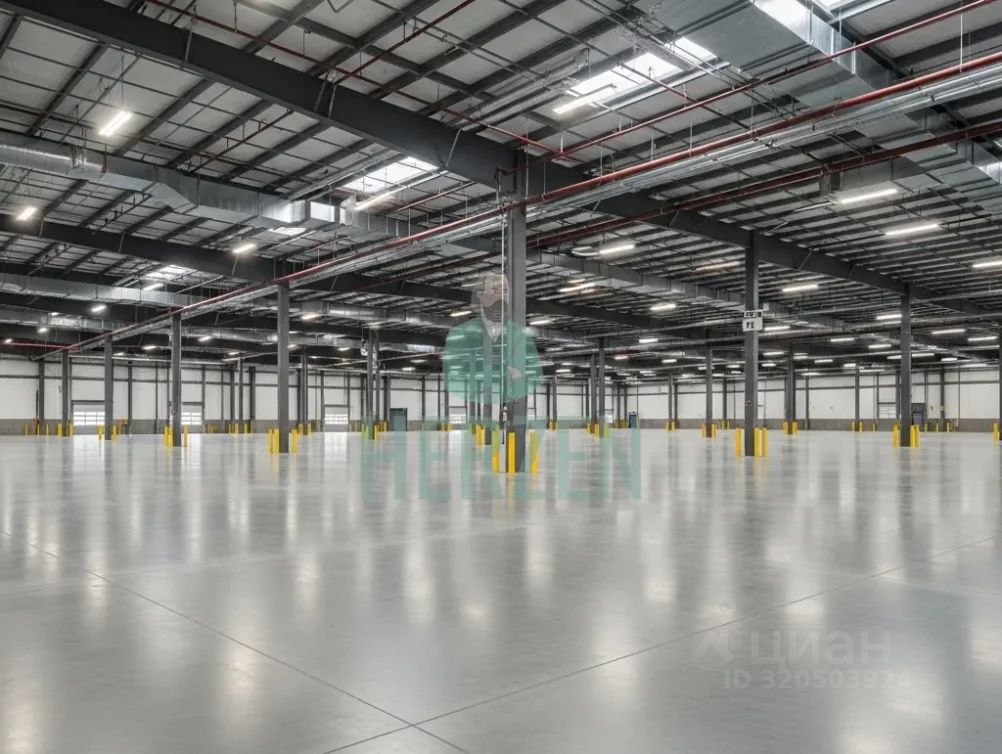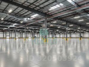 Ровный бетонный пол с антипылевым покрытием. Допустимая нагрузка на пол 6 т/м2.