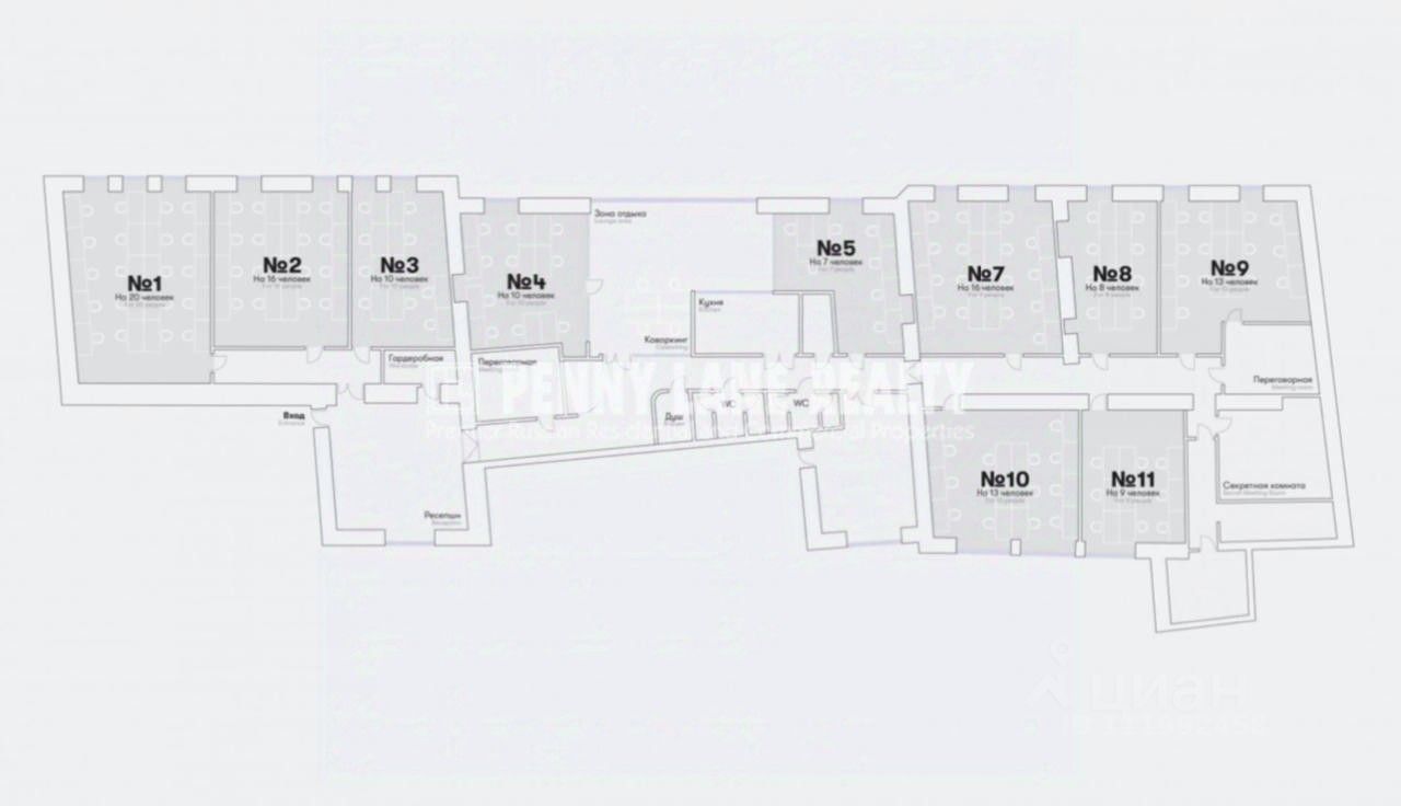 Кабинетная планировка ( 100 рабочих мест), полностью меблировано, высота потолков 4 м.