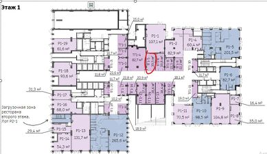 -Этаж: Первый этаж стилобатной части бизнес-центра (торговая галерея)