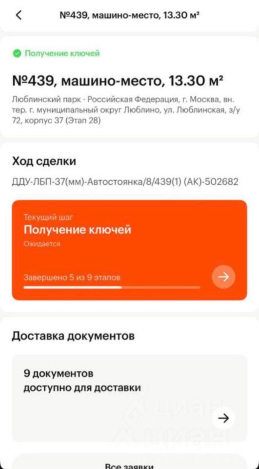 ПРОДАЮ по переуступке прав машино-место в строящейся автостоянке (корп37) 8 этаж. 13.30