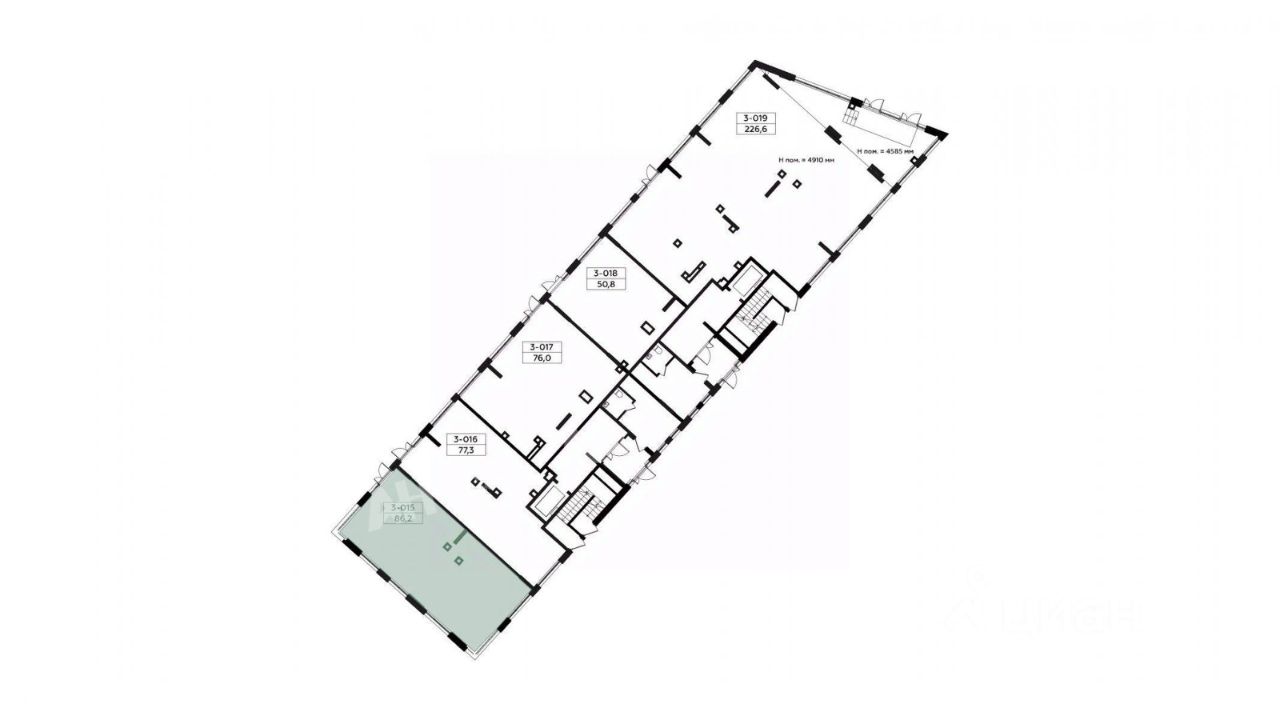 Основные характеристики объекта: площадь — 86,2 кв. м, высота потолков — 4,9 м, разрешенная мощность — 17,24 кВт. Вентиляционная система представлена каналами 150х150 и 125. Помещение имеет один вход, витринное остекление отсутствует. Прогнозируемая проходимость составляет от 4 до 32 человек в час (по данным "Геоаналитика BestPlace").