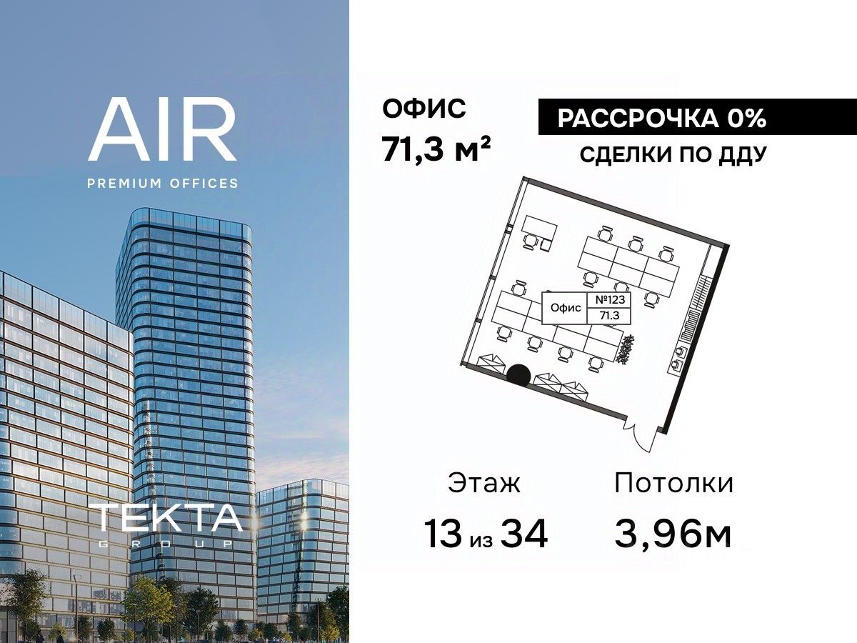 Продается помещение свободного назначения 71.30 м² на 13 этаже бизнес-центра AIR.
