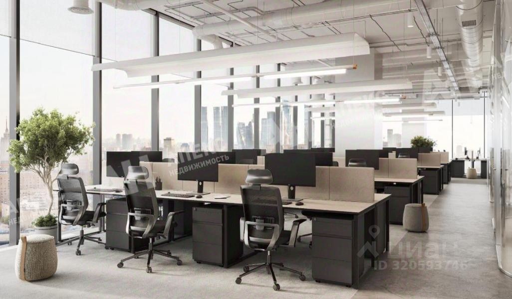офисы с панорамными окнами и высокими потолками 3.6м для максимального естественного освещения, оборудованные современными инженерными системами с управлением системы Умного здания;