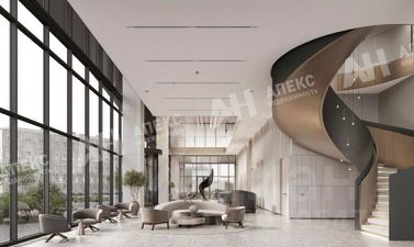 На первом этаже шикарное дизайнерское лобби с высотой потолков 9.6м и зоной ресепшн.