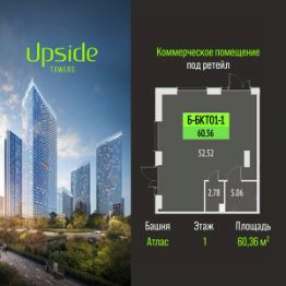 Уникальное коммерческое помещение под ретейл площадью 60.36 м² в сверхкварталеUpside Towers.