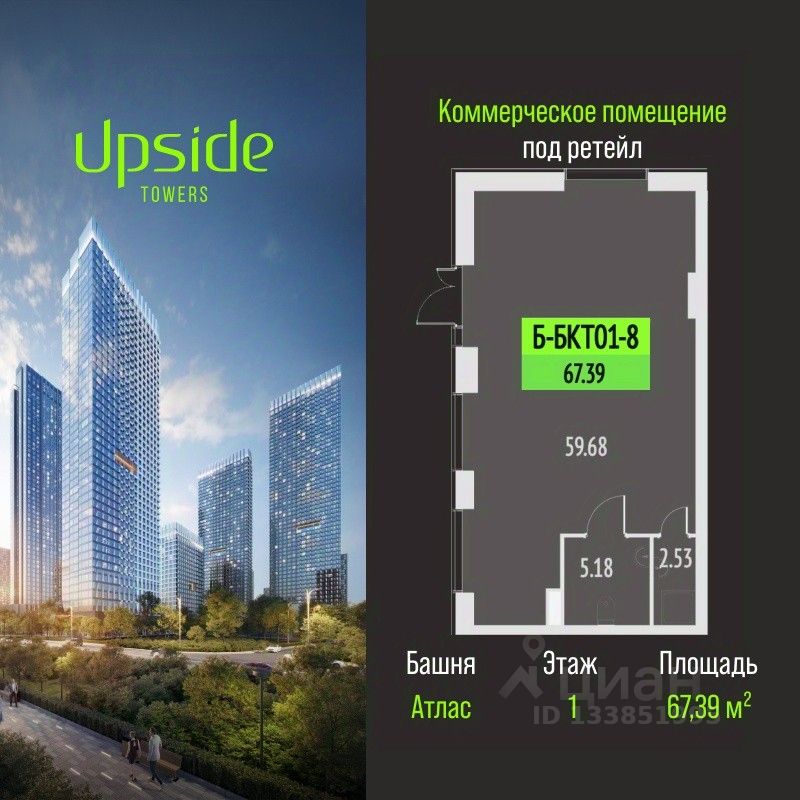 Уникальное коммерческое помещение под ретейл площадью 67.39 м² в сверхкварталеUpside Towers.
