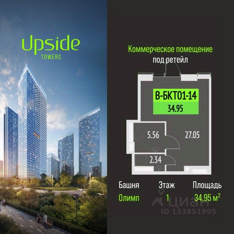 Уникальное коммерческое помещение под ретейл площадью 34.95 м² в сверхкварталеUpside Towers.
