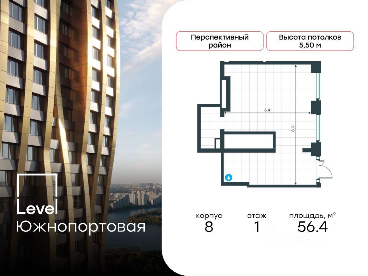 Продаётся помещение свободного назначения площадью 56.4 кв. м. в новостройке Level Южнопортовая по адресу Москва, ЮВАО, Печатники, жилой комплекс Левел Южнопортовая, 8. Помещение со свободной планировкой. Окна с видом во двор. Высота потолков 5.50 м. Отдельный вход со двора. Стоимость помещения — 31 507 115 руб. Способы оплаты и более подробная информация по телефону.