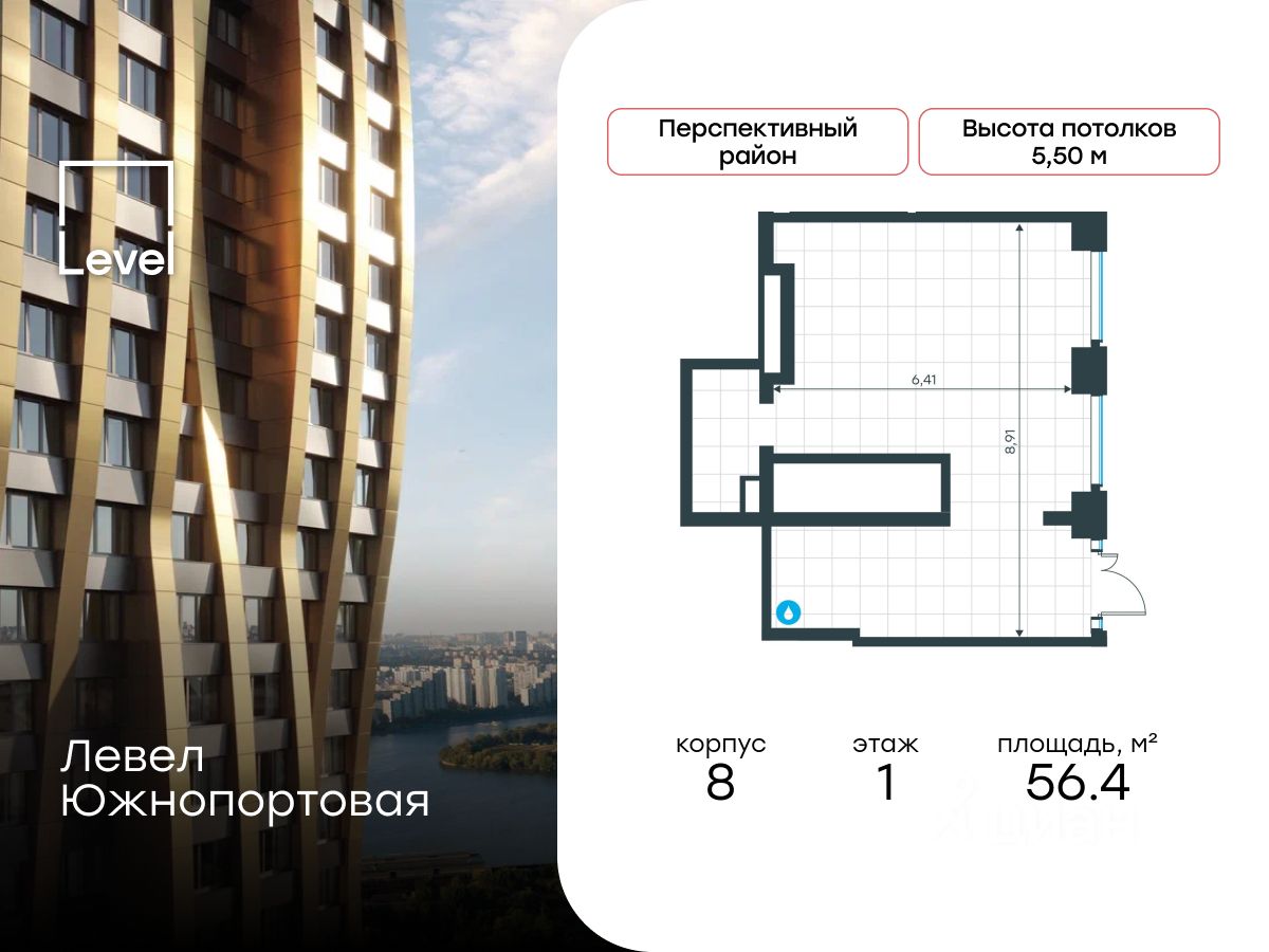 Продаётся помещение свободного назначения площадью 56.4 кв. м. в новостройке Левел Южнопортовая по адресу Москва, ЮВАО, Печатники, жилой комплекс Левел Южнопортовая, 3. Помещение со свободной планировкой. Окна с видом во двор. Высота потолков 5.50 м. Отдельный вход со двора. Стоимость помещения — 31 507 115 руб. Способы оплаты и более подробная информация по телефону.