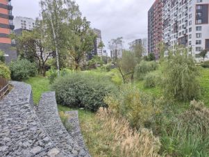 1. Расположено первое на въезде в ЖК, угловое, с высоким рекламным потенциалом, витринным остеклением. Входные группы выходят на улицу Бачуринскую.