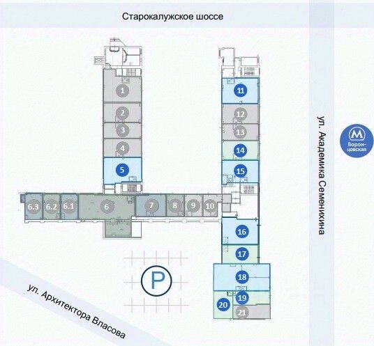 Бизнес-центр B класса Vallex расположен по адресу Москва, ЮЗАО, район Обручевский, Старокалужское ш., 62, в пешей доступности от метро Калужская (6 мин), метро Воронцовская (3 мин).
