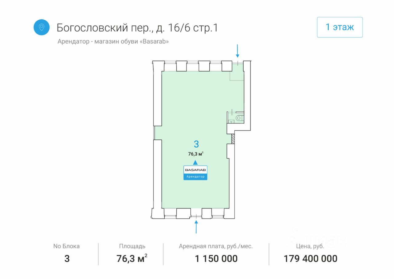 Помещение 16.9м2 - сдано в аренду на длительный срок по стоимости 350 000 р с индексацией, арендатор: