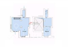 Помещение общей площадью 149,9 м2, 1-й этаж 91,4 м2, антресоль 58,5 м2, открытая планировка, отдельный вход с фасада, высота потолка 2,3-4,9 м, витринные окна по фасаду. Место для размещения рекламы.
