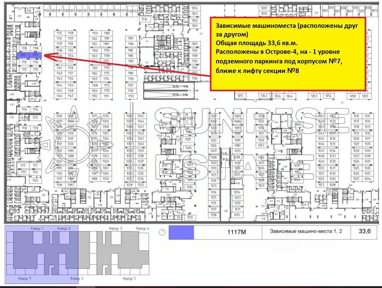 В продаже большое зависимое машиноместо в Острове-4. Площадь — 33,6 кв.м.
