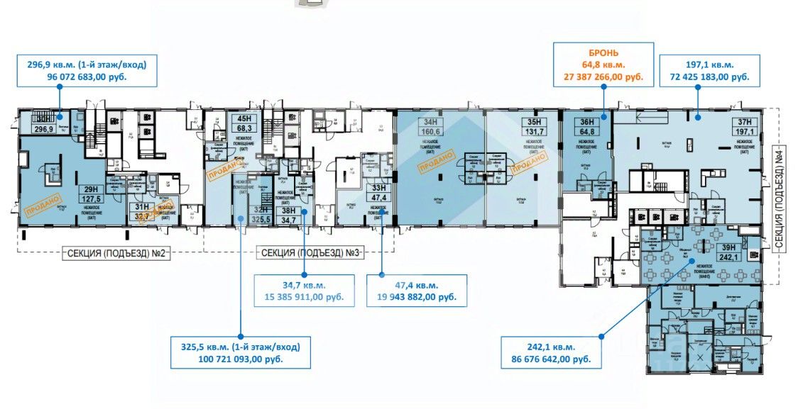 1003424 . Предлагаем помещение свободного назначения формата Street Retail, площадью 242,1 кв. м, расположенное на первом этаже жилого дома в ЖК "Сиреневый парк". Корпус К3. Без комиссии для покупателя.