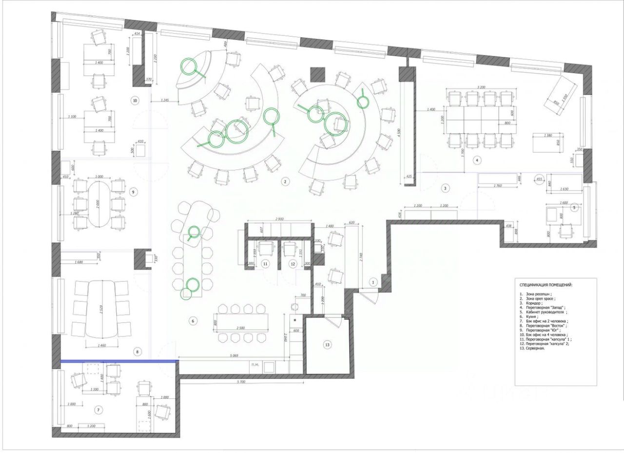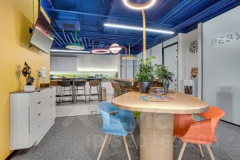 Общая площадь - 340 кв.м, включает в себя опен-спейс на 20 рабочих мест, оборудованную духовым шкафом и кофемашиной кухню, 2 кабинета, 3 переговорные комнаты и 2 телефонные кабины.