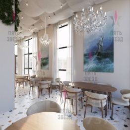 Помещение светлое и яркое благодаря витражным стеклам. Установлены сплит-системы, охранная сигнализация и высококачественная вытяжка.