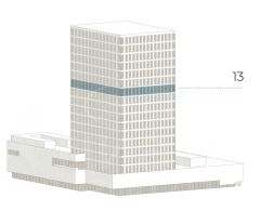 Комплекс включает офисные помещения с высокими потолками до 3,85 м, а также торговую зону с супермаркетом, магазинами, фуд-холлом, фитнесом и сервисами для резидентов.