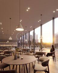 Архитектура и интерьерные решения формируют новый стандарт деловой среды: здесь работа становится органичной частью лайфстайла. Воркплейс сочетает авторский дизайн, высокотехнологичное оснащение, современные системы безопасности и инженерии, опции альтернативной мобильности (парковки для велосипедов и самокатов), душевые для ежедневного комфорта сотрудников и прямой выход на набережную — идеальную зону для перезагрузки и неформальных встреч. Внутренняя инфраструктура поддерживает сбалансированный ритм дня: предусмотрены магазины, кафе и пространства для деловых встреч и событий, включая амфитеатр.