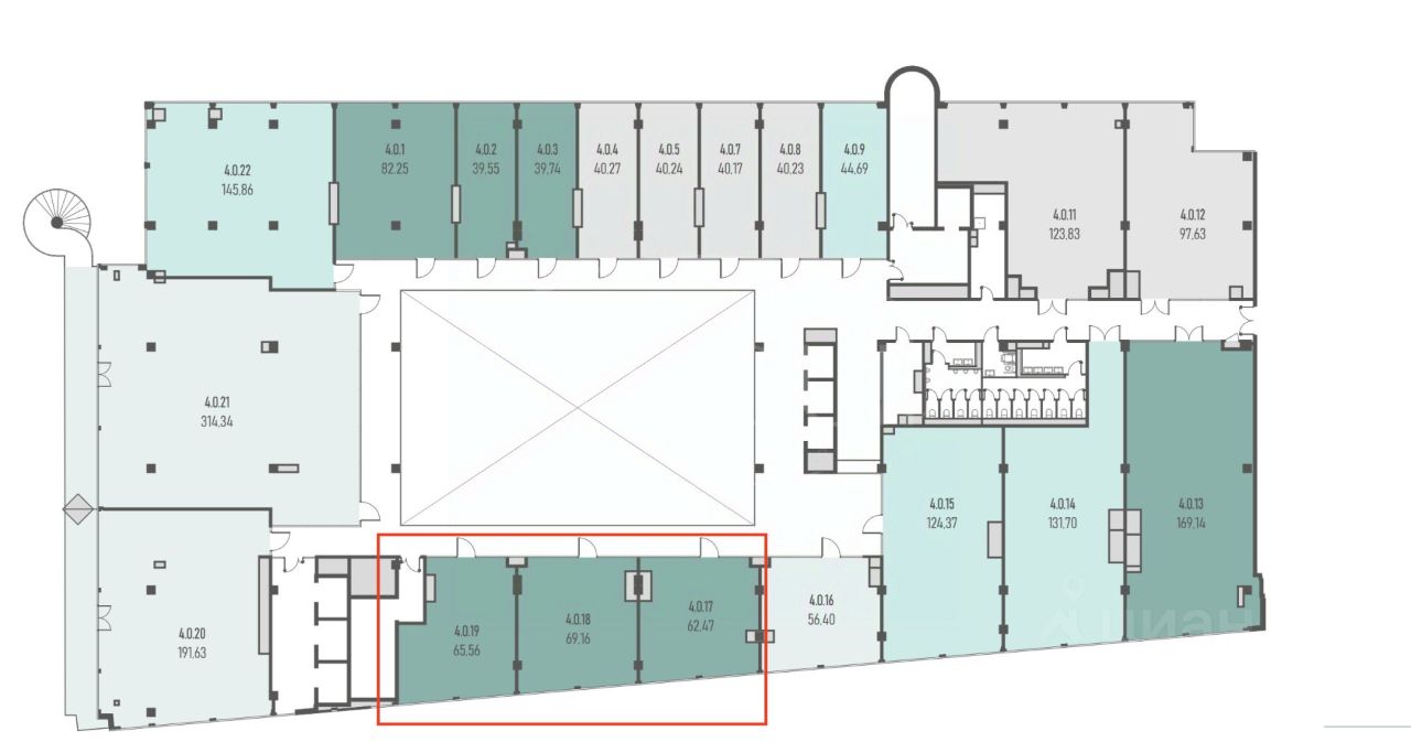 1004084 Продажа офисного помещения общей площадью 197.3 м² в Креативно-деловом кластере GUSTAV.
