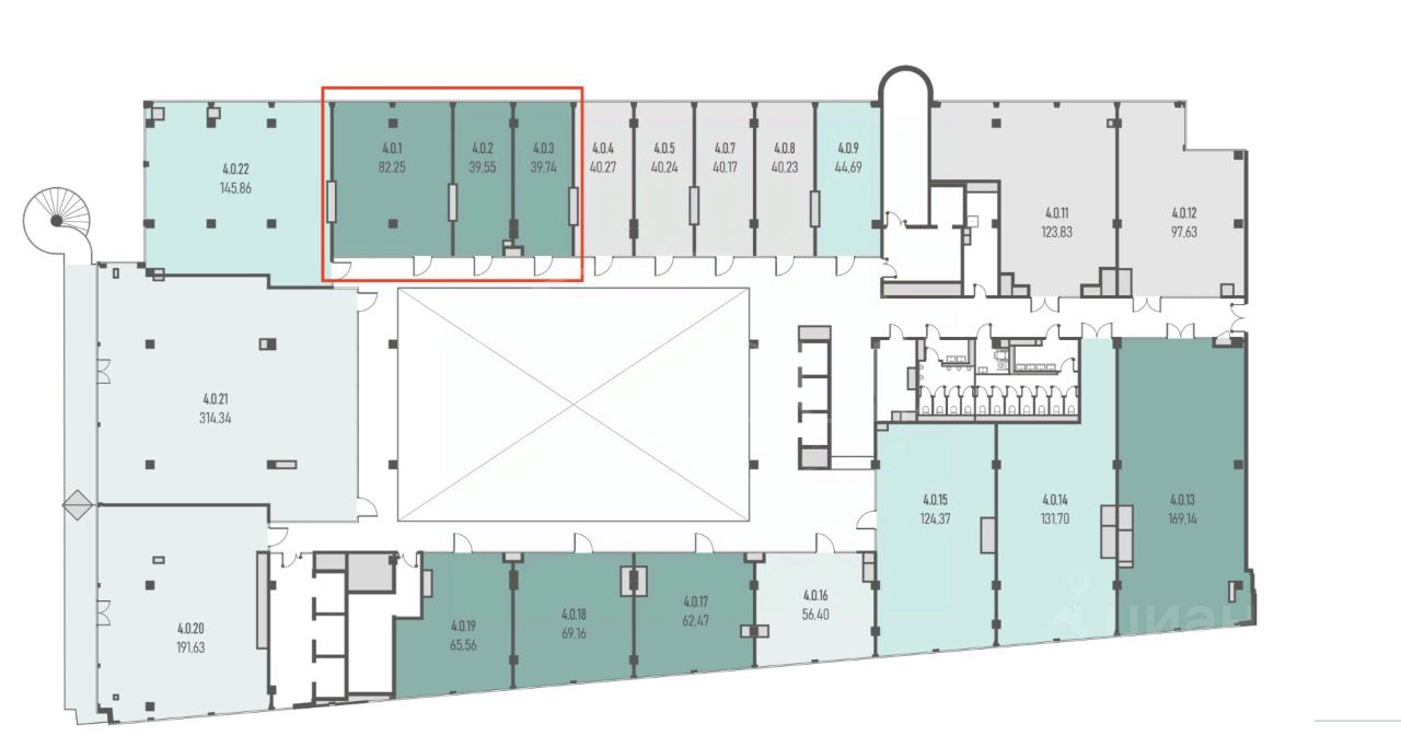 1004071 Продажа офисного помещения общей площадью 161.6 м² в Креативно-деловом кластере GUSTAV.