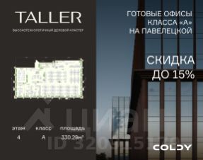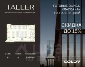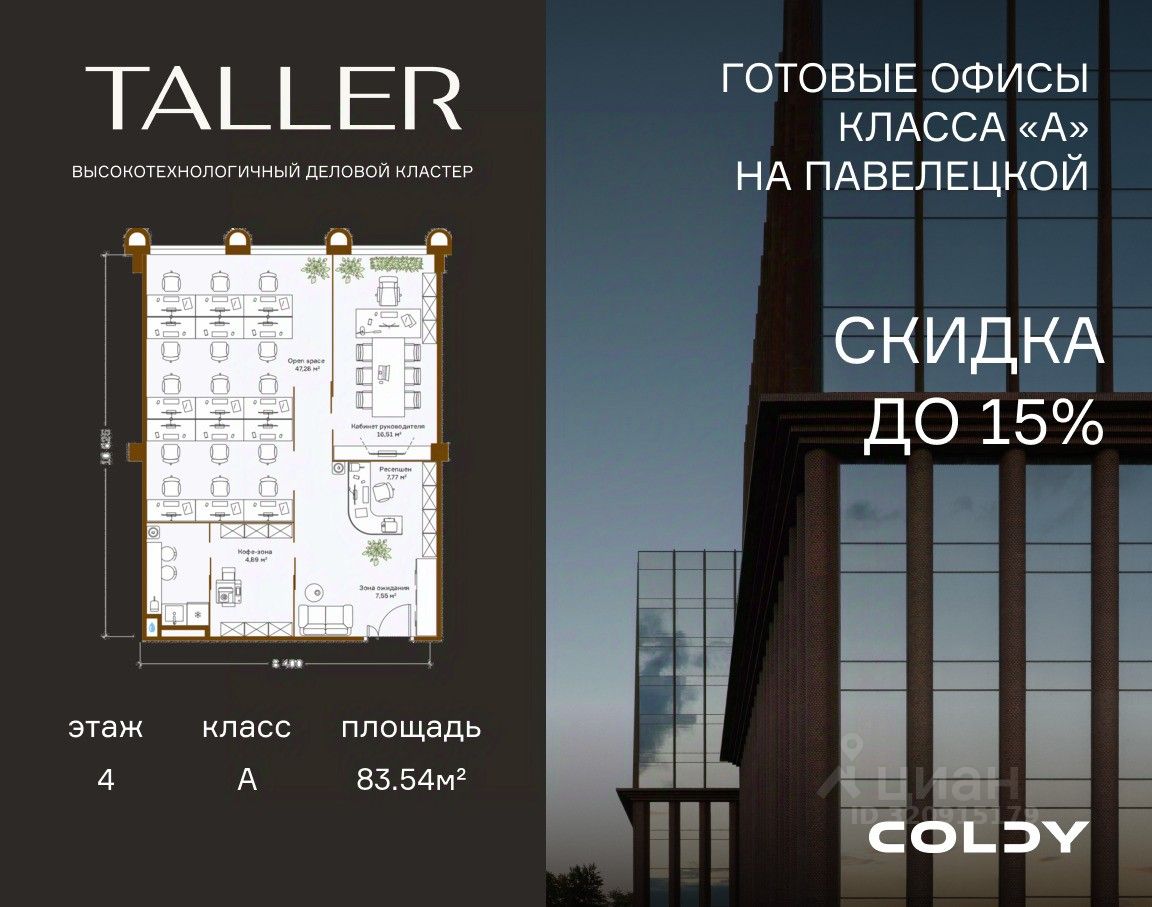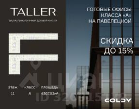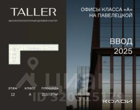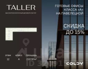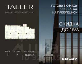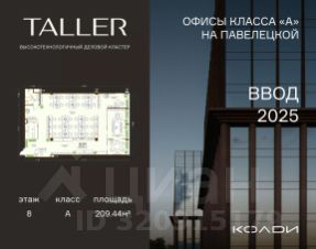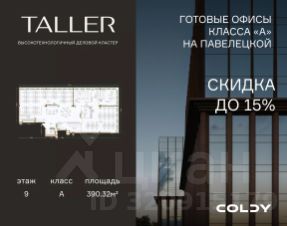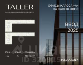 Бизнес-пространство TALLER расположено в центре Павелецкого делового района. Оно станет первым за 12 лет офисным проектом А класса в данной локации, что делает его уникальным как в целях покупки для собственного использования, так и для инвестиций. Исключительность проекта подчеркивает и гармоничное сочетание современного экстерьера с богатым архитектурным наследием прошлого: один из фасадов делового центра украшает знаковый элемент района - воссозданная по исходным чертежам водонапорная башня, некогда венчавшая ведущее промышленное предприятие XX столетия. Хорошая транспортная доступность TALLER обеспечена близостью к Садовому кольцу (1,2 км), метро "Павелецкая" и Павелецкому ж/д вокзалу, откуда регулярно курсируют экспрессы до международного аэропорта Домодедово.