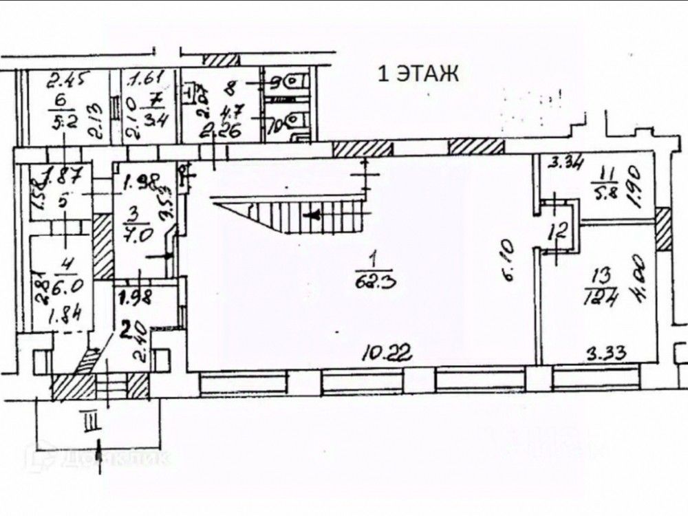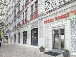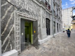 1 этаж 6-этажного жилого дома 1941 года постройки, площадью 207.2 м2, из них 1 этаж 118 м2, антресоль 89 м2. Зальная планировка. Четыре витринных окна по фасаду. Высота потолков от 4.6 до 2.2. м. Городские коммуникации. Выделенная эл. мощность: 35 кВт. Общедомовая вытяжка.