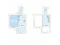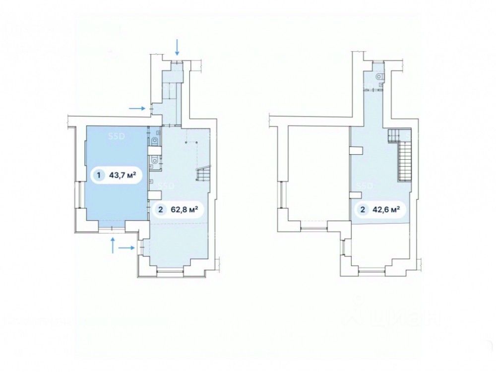 Планировка — открытая (свободная), перекрытия—ж/б, высота потолка на антресоли - 2,3м, на первом 4.9м