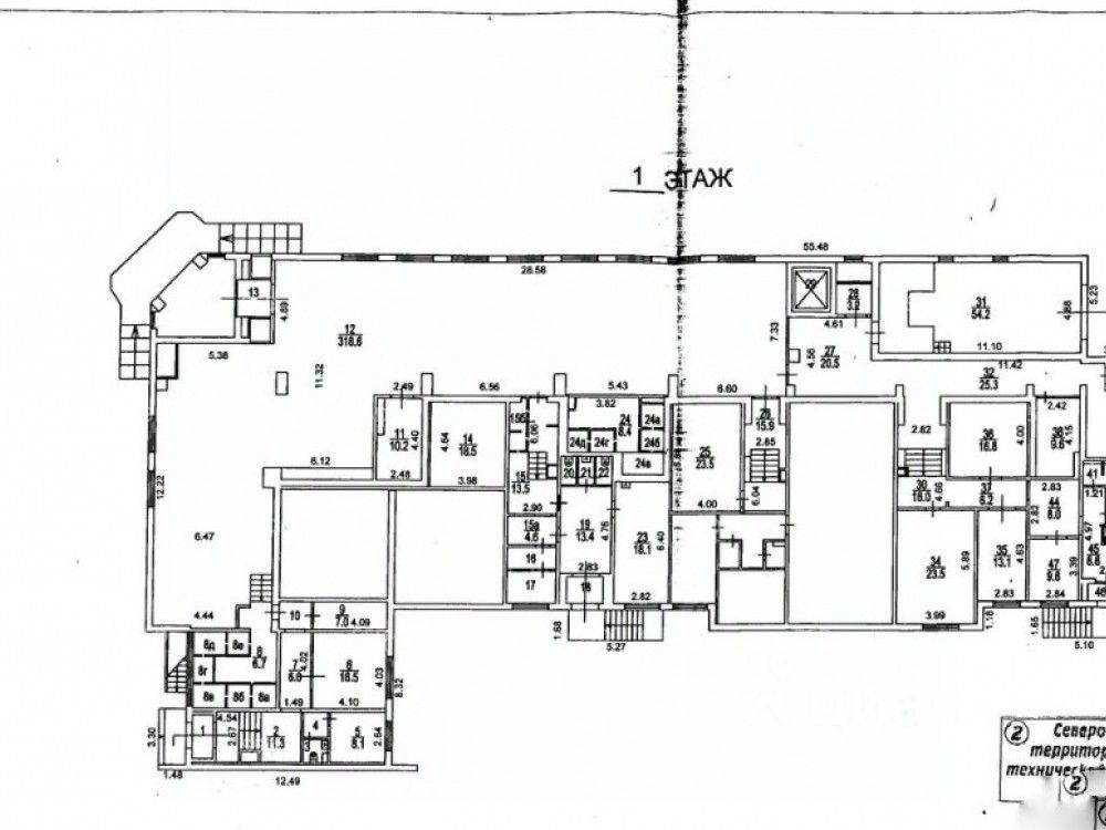 Общая площадь помещения - 1208,3 кв.м, из них: первый этаж - 776,4 кв.м (из которых торговый зал - 318,0 кв.м), подвал - 431,9 кв.м. Встроенно-пристроенная часть к жилому дому. Витринное остекление. Собственная зона погрузки-разгрузки. Электрическая мощность - 80 кВт. Высота потолков - 2,7 метра ( до комуникаций), подвал - 1,8 метра.