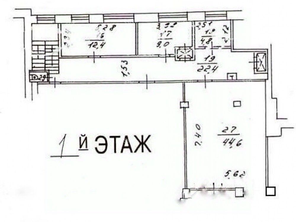 Общая площадь - 97.2 кв.м. Первый этаж.