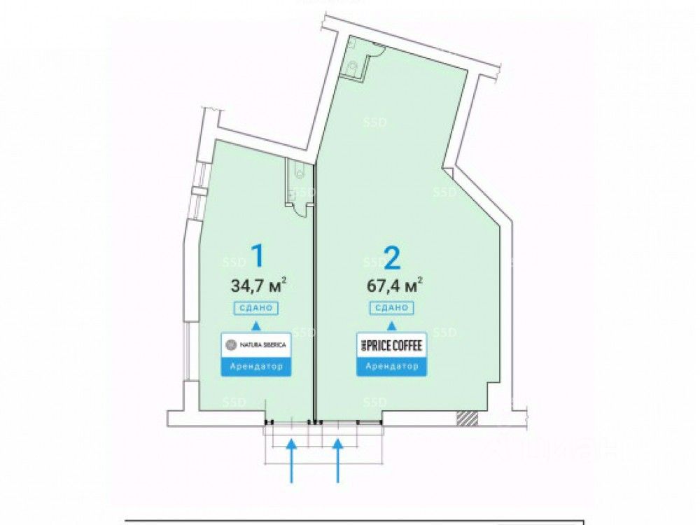 Высота потолков - 4,2 м. Отдельная входная группа с фасада 1-й линии Планировка — открытая, ж/б перекрытия.