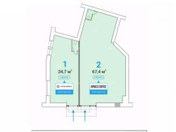 Общая площадь помещения - 34,7 кв.м. Эл. мощность - Достаточное количество под любой вид деятельности. Большие витринные окна.